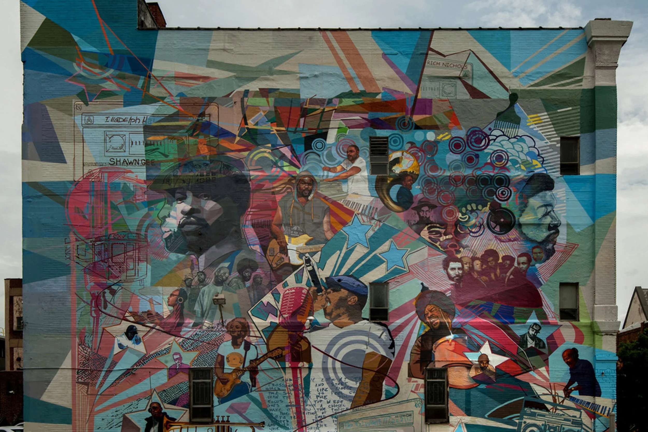 A vibrant tribute to Philly’s legendary hip‑hop group, The Root, this mural pulses with movement and color. It’s a fan favorite and a must‑see for music lovers. The mural is an official tribute created by Mural Arts Philadelphia to honor The Roots — especially founders Ahmir “Questlove” Thompson and Tariq “Black Thought” Trotter. It celebrates their journey from Philly teenagers making music on South Street to becoming Grammy‑winning cultural icons and one of the most influential hip‑hop bands in the world