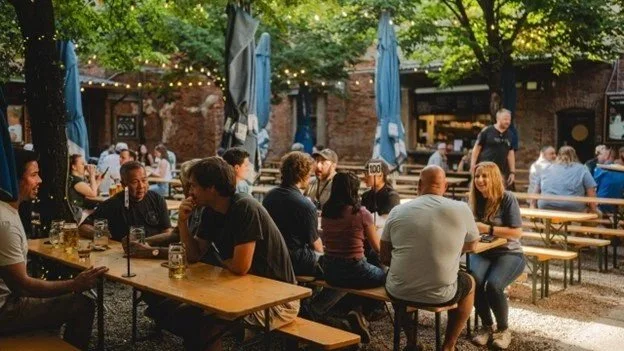 Start with happy hour at Frankford Hall, an open‑air German beer garden that’s lively, communal, and perfect for easing into the evening. Get a soft pretzel